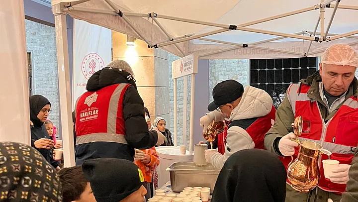 Etkinlikte görev alan Vakıflar personeli, vatandaşlara özenle hazırlanan sıcak salebi ikram ederken, samimi sohbetler ve dualar eşliğinde kandil gecesinin manevi atmosferi daha da güçlendi.