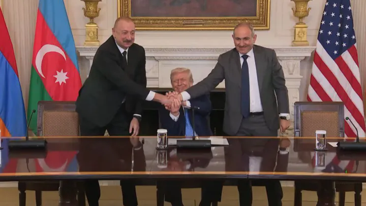 Azerbaycan ile Ermenistan arasında Beyaz Saray'da barış için zaptı imzalandı. ABD Başkanı Trump düzenlenen törende