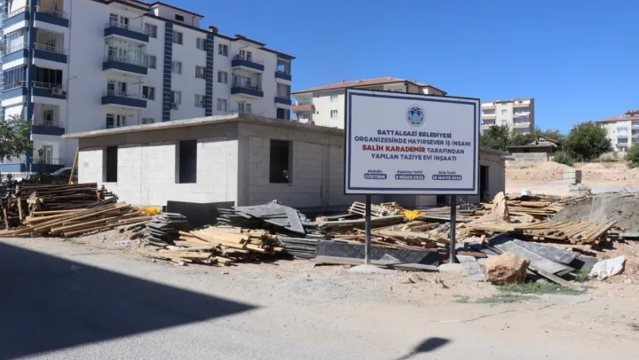 Malatya'nın Battalgazi ilçesi Göztepe Mahallesi'nde hayırsever iş insanı Salih Karademir'in desteğiyle taziye evi inşa ediliyor.