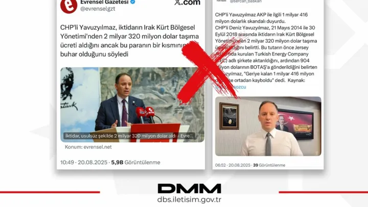 İletişim Başkanlığı Dezenformasyonla Mücadele Merkezi (DMM), 'Türkiye'nin Irak-Türkiye Ham Petrol Boru Hattı üzerinden 2 milyar 320 milyon dolar gelir elde ettiği, bu tutarın Turkish Energy Company (TEC) adlı şirkete aktarıldığı ve 1 milyar 416 milyon dolarının kaybolduğu' iddiasını yalanladı.