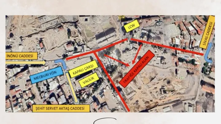 Bu süre zarfında İnönü Caddesi üzerinden gelen araçların Şehit Servet Aktaş Caddesi (Eski Ziraat Bankası) yönüne, Atatürk Caddesi üzerinden gelen araçların ise Sivas Caddesi istikametine mecburi olarak yönlendirileceği ifade edildi.