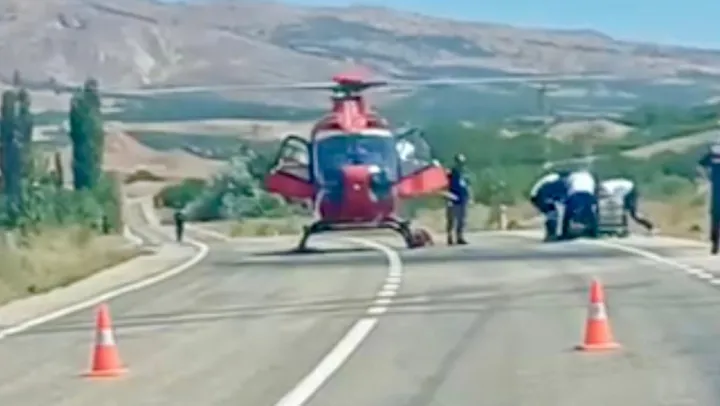 Kuluncak'ta helikopter ambulans hasta almak için karayoluna indi