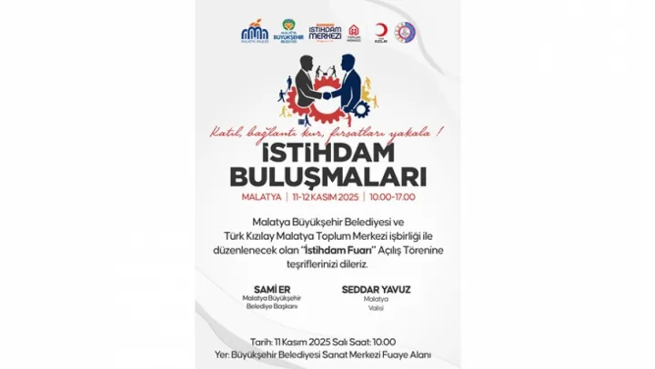 Yerel istihdamı güçlendirmek, iş arayanlarla işverenleri aynı çatı altında buluşturmak ve Malatya'nın iş gücü potansiyelini harekete geçirmek için düzenlenen 'İstihdam Buluşmaları Malatya' başlıyor.