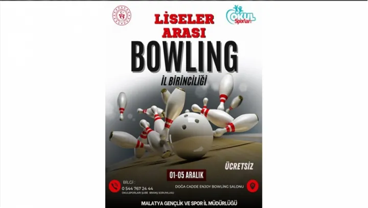 MALATYA (MHA) - Malatya Gençlik ve Spor İl Müdürlüğü Okul Sporları Şubesi tarafından düzenlenen Liseler Arası Bowling İl Birinciliği Müsabakaları, 1–5 Aralık tarihleri arasında Doğa Cadde Enjoy Bowling Salonu'nda gerçekleştirilecek.