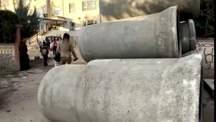 Malatya'da Gazi İlkokulu'nun giriş kapısına alt yapıda kullanılan beton künklerin istiflenmesi okula girip çıkan öğrenciler için büyük tehlike yaratıyor. Bu duruma tepki gösteren bir veli ise kaydettiği görüntülere öğrencilerin bu devasa künklerin yanından geçip okula gittiklerini belirterek olası bir kazanın kaçınılmaz olduğunu ifade etti.