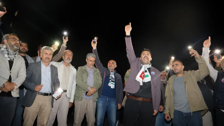 Battalgazi Belediye Başkanı Bayram Taşkın ise, yapılan protestonun bir saf belirleme olduğunu ifade ederek, 'Bugün burada safımızı belirlemeye geldik. Peygamber Efendimiz bir Hadis-i Şerif'te şöyle buyuruyor: 'Bir kötülük gördüğünüzde elinizle müdahale edin, buna gücünüz yetmiyorsa dilinizle müdahale edin, buna da gücünüz yetmiyorsa kalbinizle buğz edin ki bu da imanın en zayıf noktasıdır.' Şu anda fiili olarak elimizden bir şey gelmiyor. Kardeşlerimize dua gönderiyoruz. En azından siyonist kafire kalben buğz ediyoruz, safımızı belirliyoruz. Bugün dünyanın gözü bu filoda. Bu filonun içerisinde Müslim ve gayrimüslim, insanlık adına biraz merhamet taşıyan kim varsa dua ediyor, gayret gösteriyor. Bu artık Müslümanlığın meselesi olmaktan çıktı, bir insanlık meselesine döndü. Filoda belki yüzde 70 gayrimüslim var; insanlık adına bu mücadelenin bir parçası oldular.' diye konuştu.