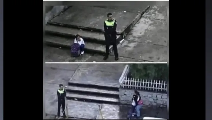 Okulun kapanmasının ardından ailesi henüz gelmeyen küçük bir kız, yalnız kalmadı. Görevli bir polis memuru, ailesi gelene kadar minik öğrencinin yanında kalarak onu korudu ve güvende olduğundan emin oldu. Uzun süre kız çocuğuyla birlikte bekleyen polis memuru, sergilediği bu duyarlı davranışla yürekleri ısıttı.