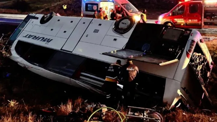 Afyonkarahisar'ın Dinar ilçesinde, yolcu otobüsünün şarampole devrilmesi sonucu 2 kişi hayatını kaybetti, 21 kişi yaralandı.