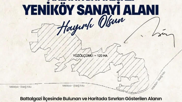 Battalgazi Belediye Başkanı Osman Güder'in girişimleriyle Cumhurbaşkanı Recep Tayyip Erdoğan'ın imzasıyla Malatya-Elazığ yolu üzerinde bulunan alan 'Yeniköy Sanayi Alanı' olarak belirlendi