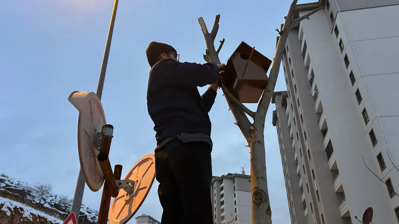 MALATYA (MHA) - Battalgazi’de bir esnaf, soğuk hava nedeniyle bir kuşun öldüğünü görmesi üzerine çevre sakinlerinin de desteğiyle kuşlar için el yapımı yuvalar hazırlayarak iş yeri çevresine astı.