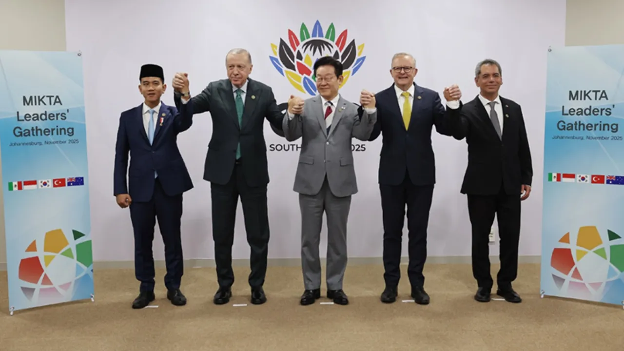 Cumhurbaşkanı Recep Tayyip Erdoğan, Güney Afrika Cumhuriyeti'nin Johannesburg kentinde düzenlenen G20 Liderler Zirvesi kapsamında; Türkiye, Meksika, Endonezya, Güney Kore ve Avustralya’da oluşan gayriresmî istişare ve eş güdüm platformu MIKTA’nın liderleriyle bir araya geldi. (İLKHA)