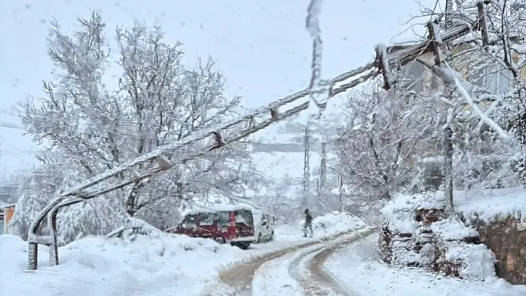 MALATYA (MHA) - Malatya’nın Doğanşehir ilçesine bağlı Erkenek Mahallesi’nde etkili olan aşırı kar yağışı ve tipi nedeniyle konteyner kent yolunda bulunan bir elektrik direği devrildi.