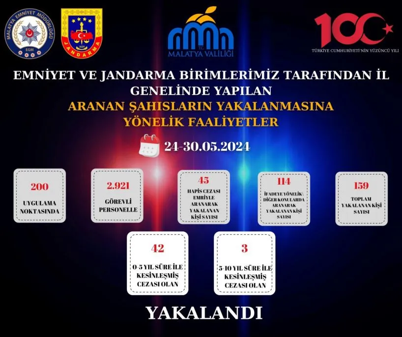• Emniyet ve Jandarma ile birlikte suç ve suçlularla mücadelede icra edilen faaliyetler