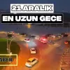 21 Aralık yılın en uzun gecesi olurken, Malatya Emniyet Müdürlüğü kentin huzur ve güvenliği için sahadaki varlığını artırdı. Şehrin dört bir yanında görev yapan polis ekipleri, vatandaşların güvenli bir gece geçirmesi adına denetimlerini aralıksız sürdürdü.