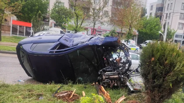 Park Halindeki Araca Çarpan Otomobil Ters Döndü: Sürücü Kaçtı