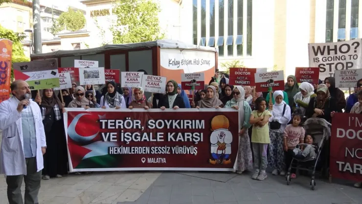 Hekimler ve sağlık çalışanları, "2 milyon mazlumun göğü inleten çığlıklarına sessiz kalan sağırlarla, çocuk ve kadınlar öldürülünce susan dilsizlerle hesaplaşacağız." diyerek, zulme karşı durma kararlılıklarını bir kez daha vurguladılar.