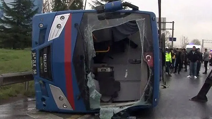 Kağıthane'de cezaevi nakil aracı devrildi: 19 yaralı