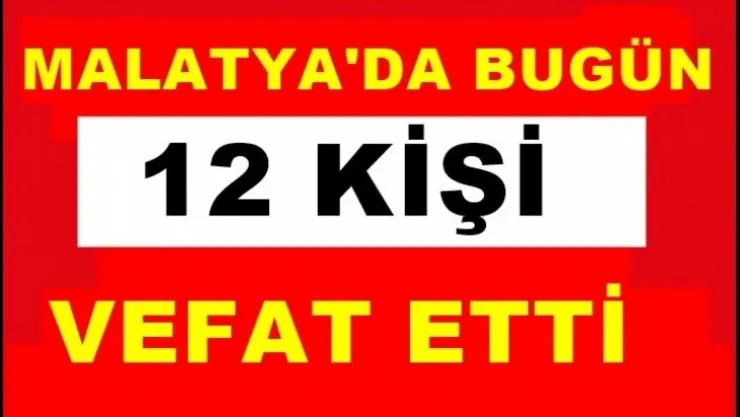 Malatya Büyükşehir Belediyesi Şehir Mezarlığı Müdürlüğünden verilen bilgilere göre, Bugün Malatya'da 12 kişi vefat etti.