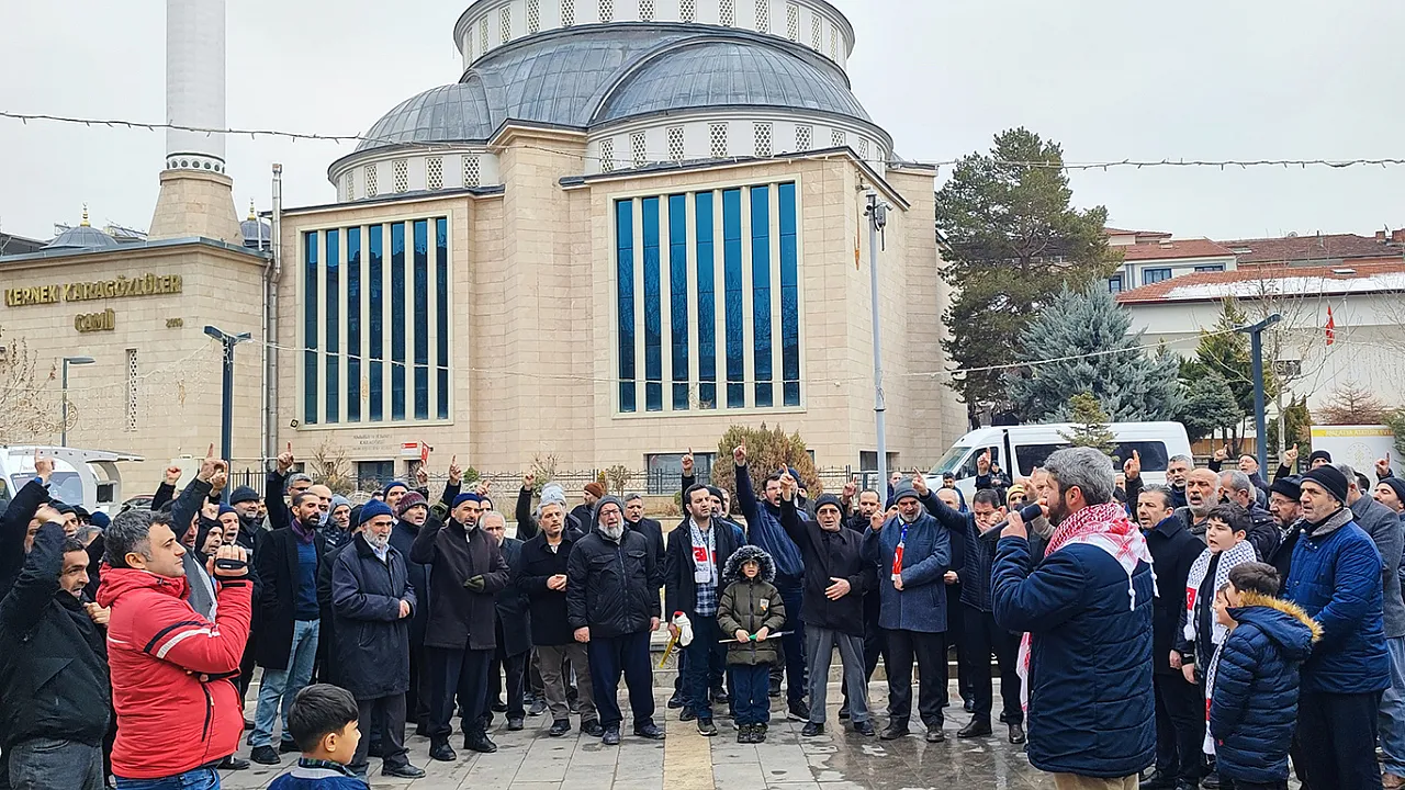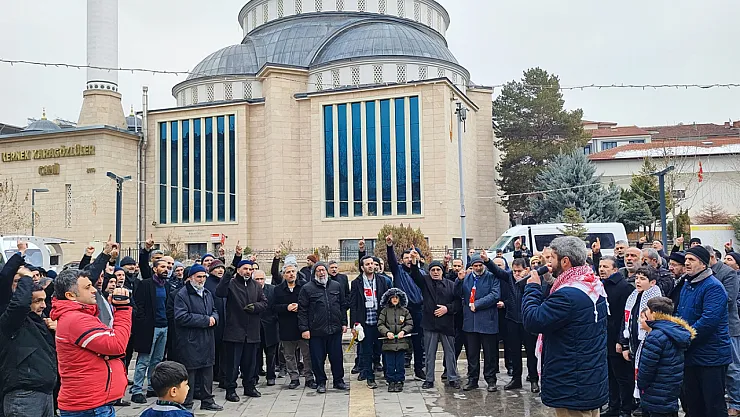 Eski İl Milli Eğitim Müdürlüğü önünde toplanan vatandaşlar, tekbirler ve sloganlar eşliğinde Kernek Karagözlüler Camii bahçesine kadar yürüdü.