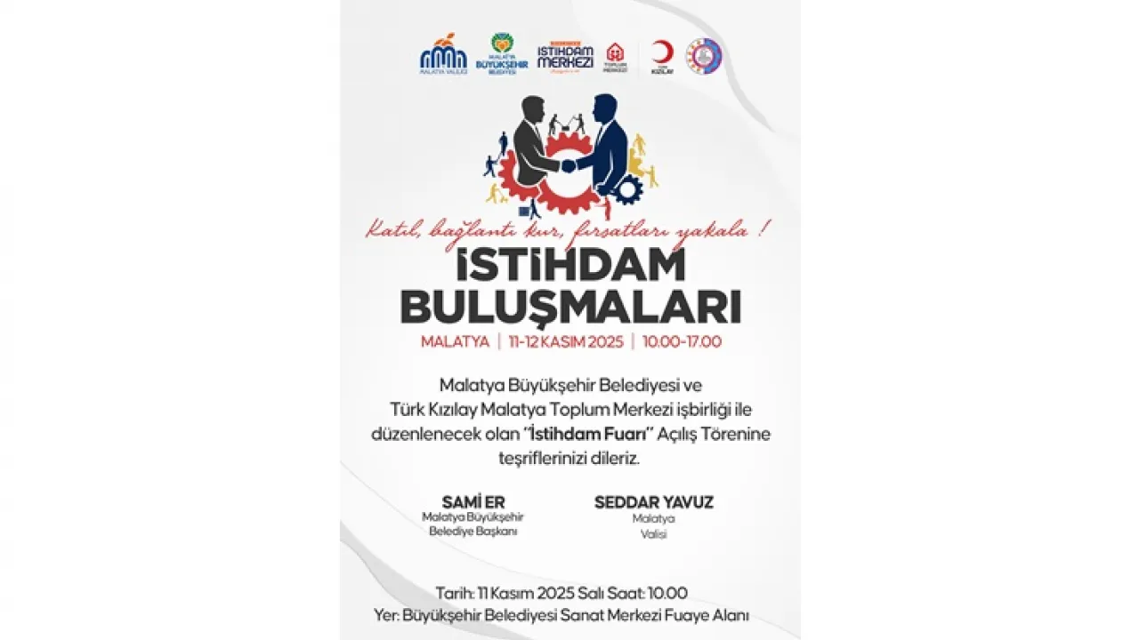 Yerel istihdamı güçlendirmek, iş arayanlarla işverenleri aynı çatı altında buluşturmak ve Malatya’nın iş gücü potansiyelini harekete geçirmek için düzenlenen “İstihdam Buluşmaları Malatya” başlıyor.
