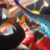 Araçta sıkışan yaralılar, itfaiye ekipleri tarafından çıkarılacak sağlık ekiplerine teslim edildi.
