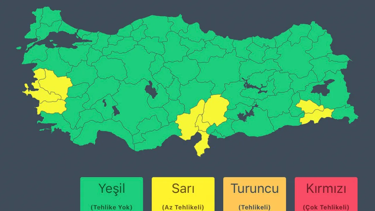 Bakanlık açıklamasına göre; Osmaniye çevreleri, Hatay’ın kıyı kesimleri, Adana’nın güneydoğu ilçeleri ile Kahramanmaraş’ın güneybatı ilçelerinde yerel kuvvetli yağışlar görülebilecek.