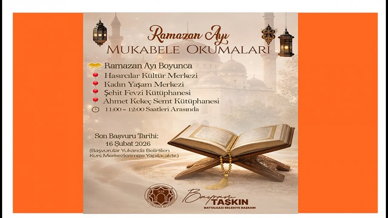 Battalgazi Belediyesi Kültür, Sanat ve Sosyal İşler Müdürlüğü tarafından Ramazan ayına özel olarak düzenlenecek Mukabele Okumaları için başvurular alınmaya başladı.
