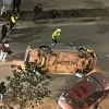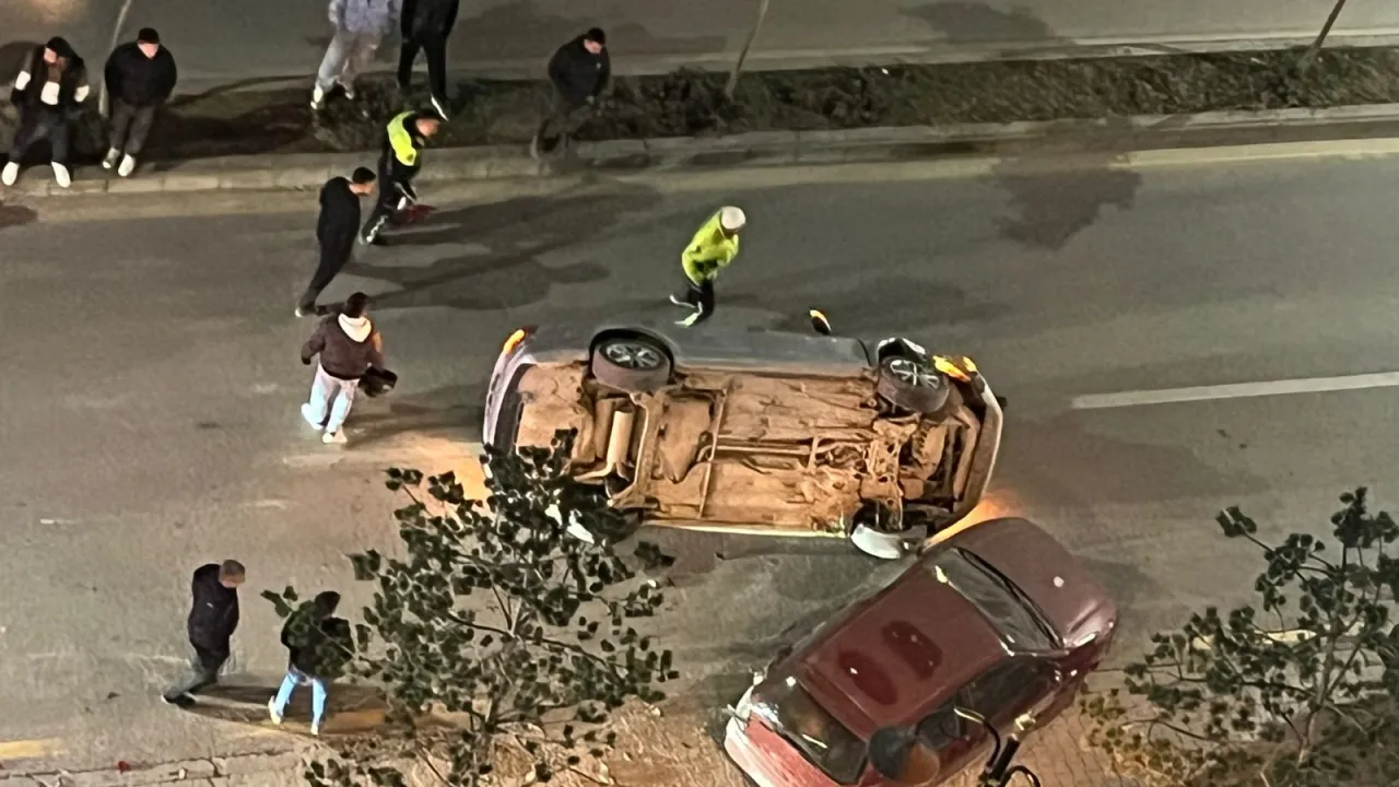 Malatya'da akşam saatlerinde meydana gelen kazada, kontrolden çıkan bir otomobil park halindeki araca çarparak ters döndü.