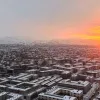 6 Şubat depremlerinde yıkılan Malatya çarşısının yerine inşa edilen yeni çarşı merkezi, etkili olan kar yağışıyla beyaza bürünürken, gün batımında drone ile kaydedilen görüntüler kartpostallık manzaralar sundu.