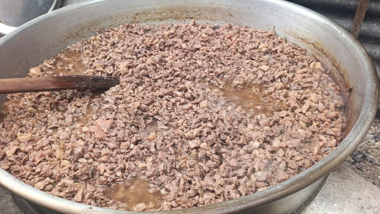 Etin kavrulması ve tenekelere bastırılması yaklaşık 3-4 saat sürüyor
